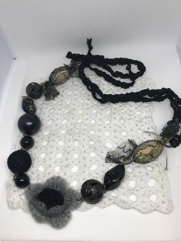 Hand Crochet Floral Pattern Black Beads Necklace – CA$9.99