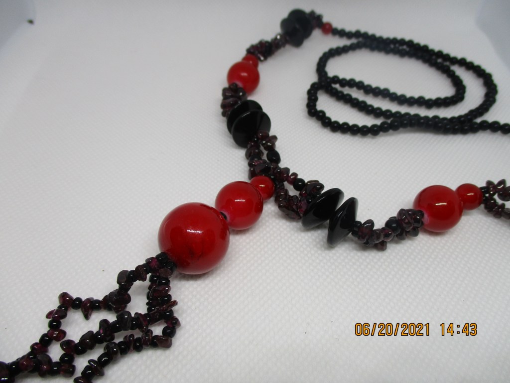 Red Beads and Natural Stones Handmade Necklace – CA$9.99